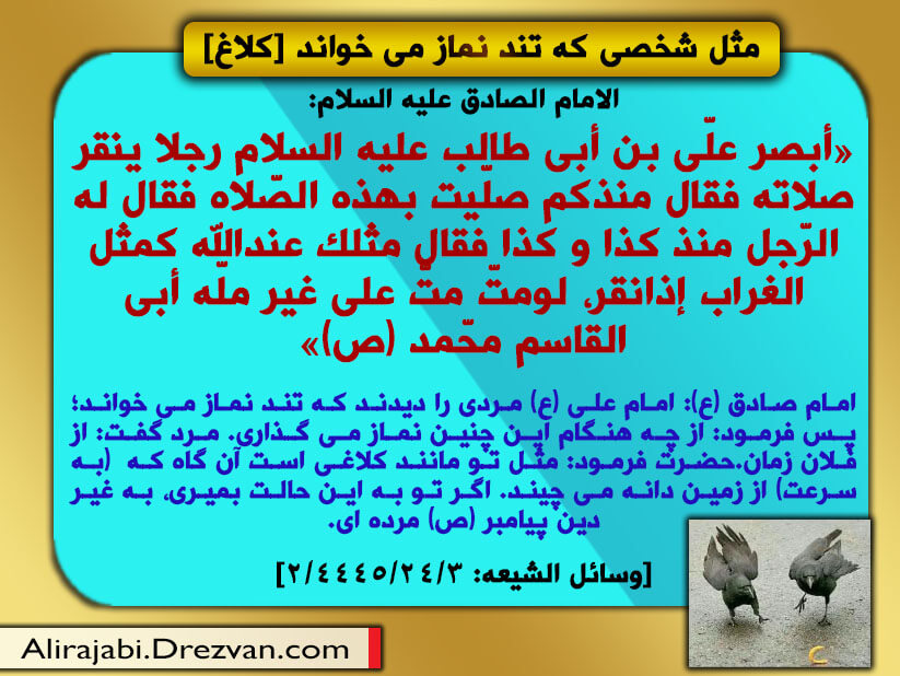 مثل شخصی که تند نماز می خواند [کلاغ]، کلام امام صادق (ع)2017/01/18نماز ستون دین است ،کلام رسول خدا (ص)2017/01/18 مدیر سایت دیدگاهتان را بنویسید لغو پاسخنشانی ایمیل شما منتشر نخواهد شد. بخشهای موردنیاز علامتگذاری شدهاند *دیدگاه * نام * ایمیل * وب سایت ذخیره نام، ایمیل و وبسایت من در مرورگر برای زمانی که دوباره دیدگاهی مینویسم. Δ