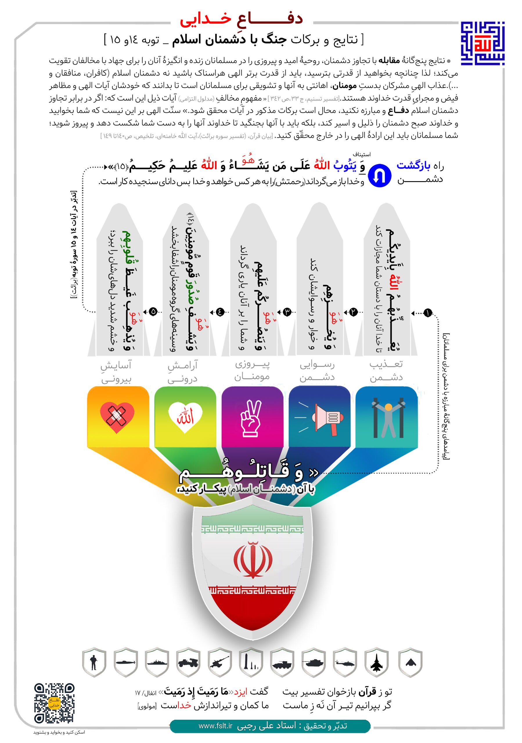 2025/11/01اینفوگرافی با موضوع دفاع خدایی ( نتایج و برکات جنگ با دشمنان اسلام (سوره توبه ۱۴ و ۱۵ )) ، تحقیق و تدبّر حجت الاسلام علی رجبی ، طراح مهندس نصیری دانلود فایل صوتی مربوط به اینفوگرافی