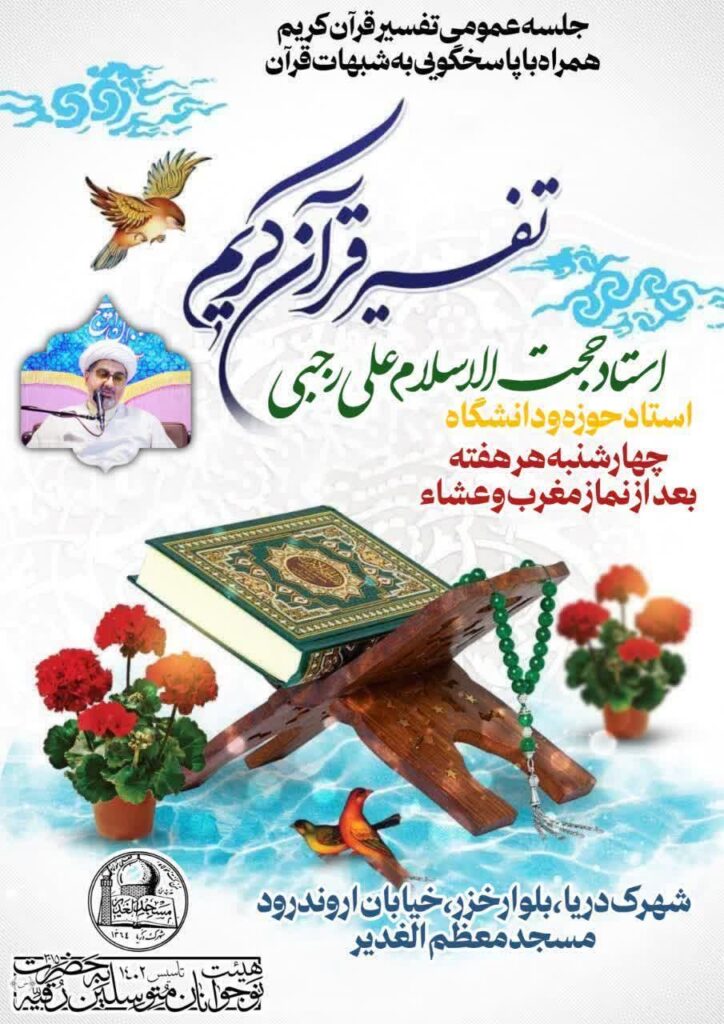 مسجد معظم الغدیر واقع در شهرک دریا، چهارشنبه هر هفته میزبان برگزاری جلسات تفسیر قرآن همراه با پاسخگویی به شبهات است.به گزارش ایکنا، سخنرانی جلسات هفتگی […]